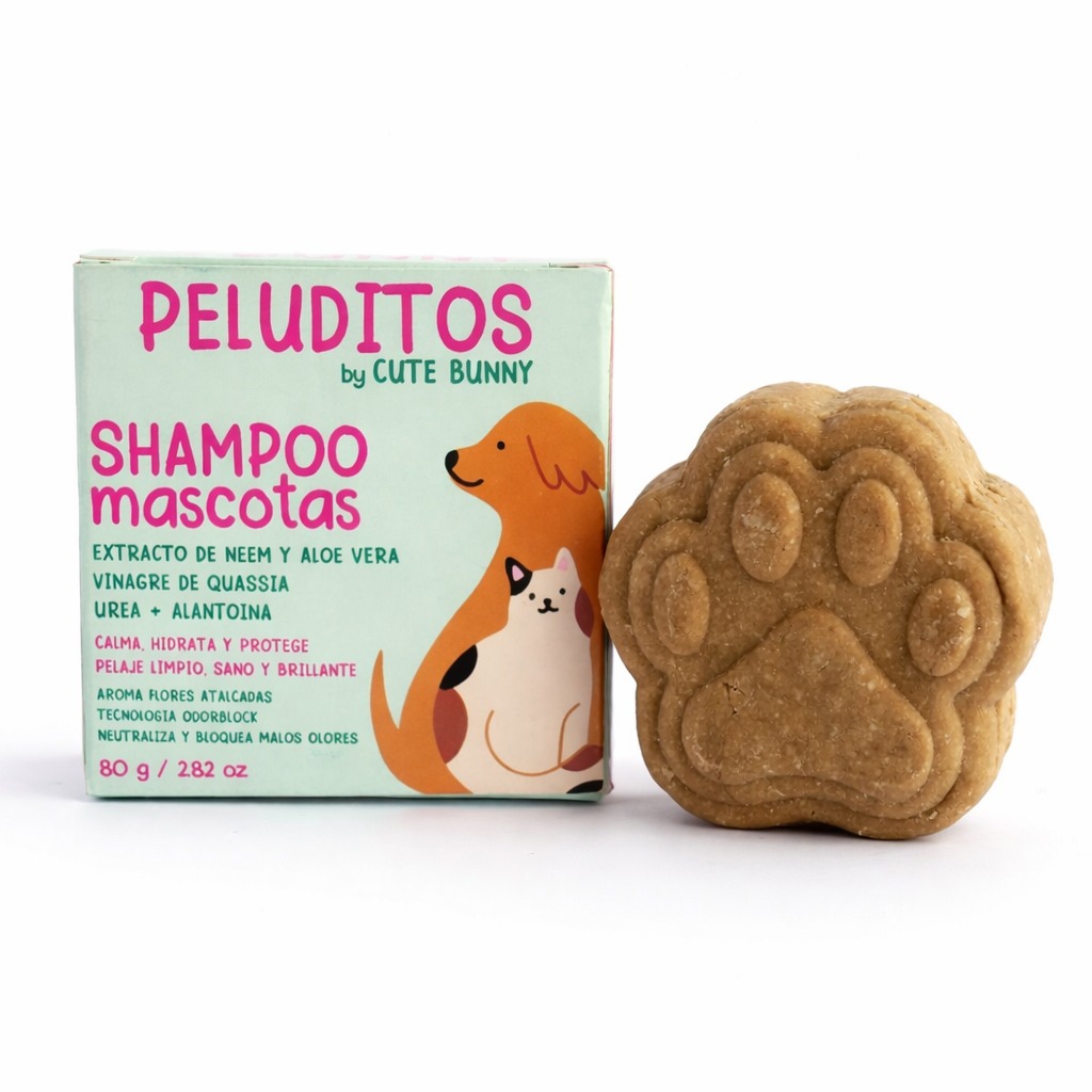 Con el pelo mojado de tu mascota frotar la barrita húmeda de shampoo hasta que salga espuma y luego masajear de forma circular.